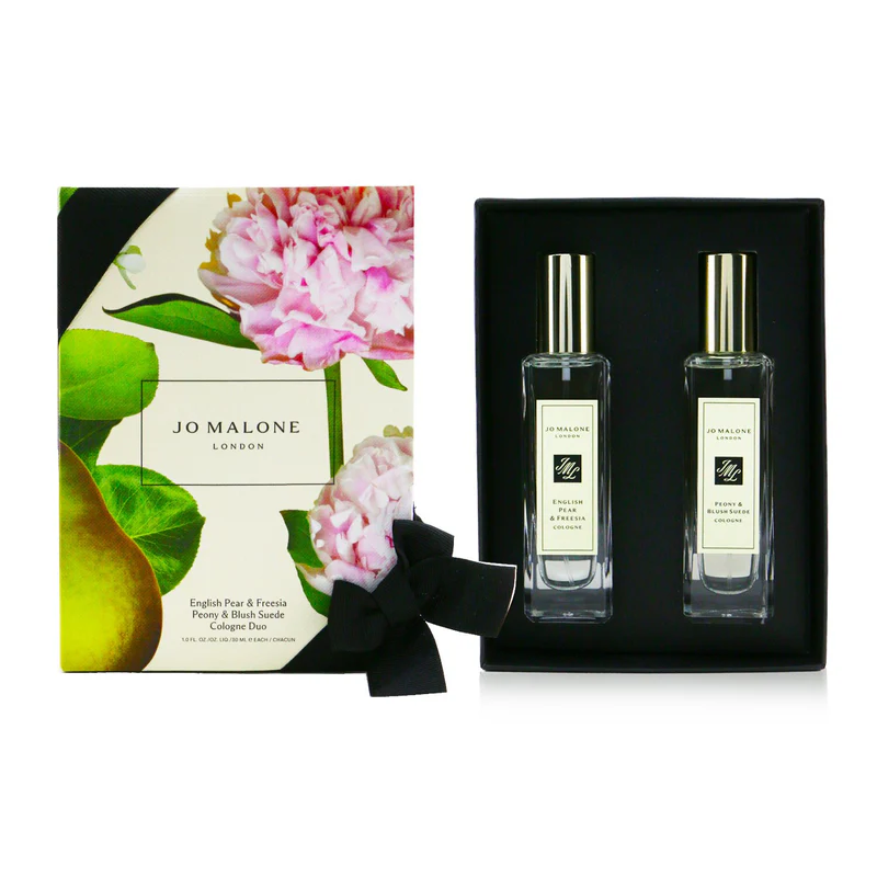 Jo Malone English Pear & Freesia + Peony & Blush Suede е сияен и ефирен дует от аромати, вдъхновен от митичната красота на английските градини в пълен разцвет. Този комплект улавя магическата светлина на смяната на сезоните и я превръща в изискана композиция, която балансира между хипнотичната свежест и меката чувственост.